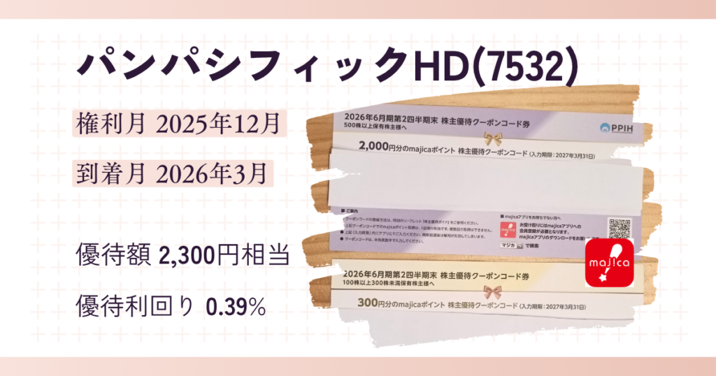 パンパシフィックHD(7532)から株主優待と配当金が届きました。(2025年12月権利分)
