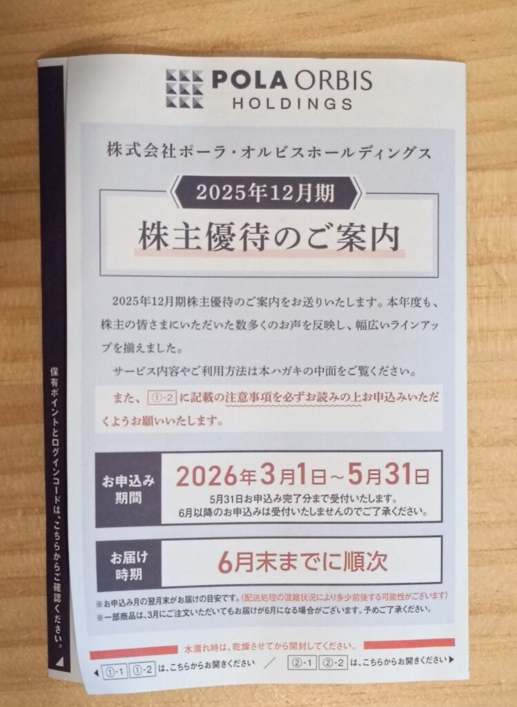 ポーラ・オルビスホールディングス(4927)から株主優待と配当金が届きました。