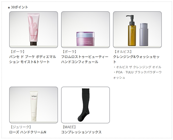 30ポイントはこのようなラインナップとなります。