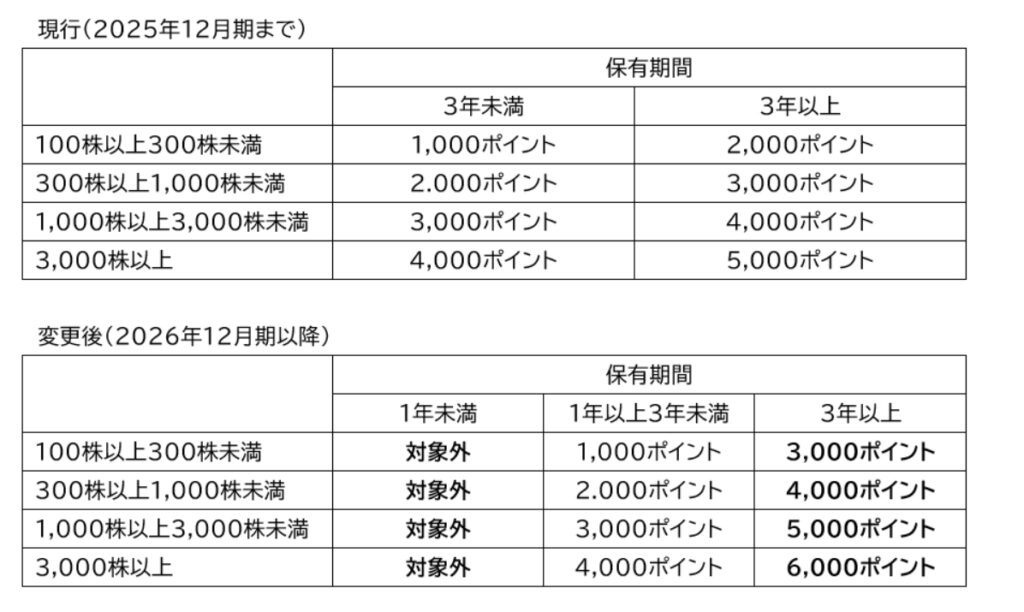 ・保有株数と保有期間に応じてポイント数が増加!