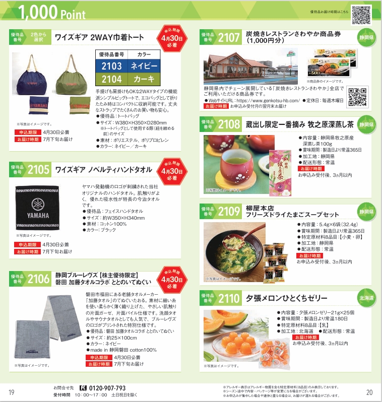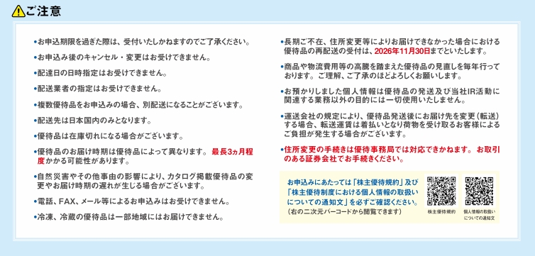 ただし、優待品により申し込み期限が異なるものもあります。