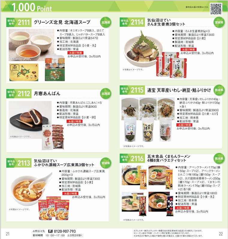 優待品には以下のようなラインアップがあります: