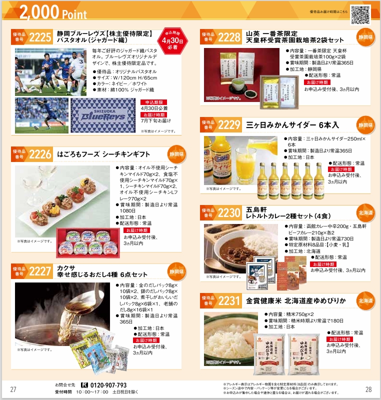・翌年3月頃に優待案内が届き、商品申込開始