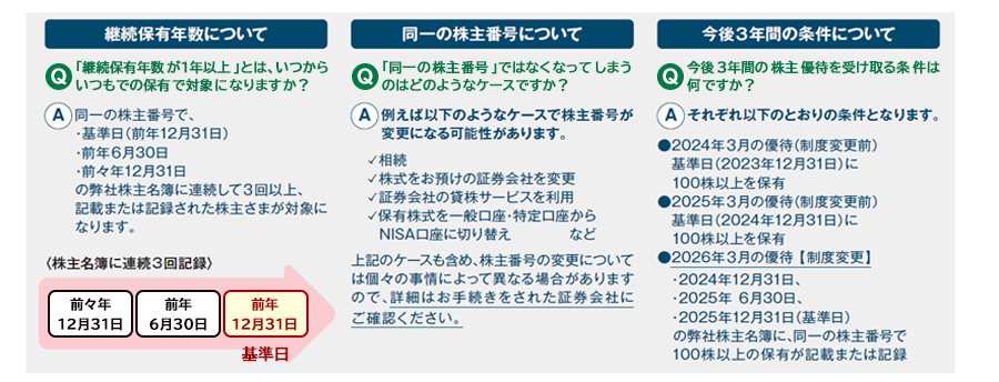●2024年12月末日・2025年6月末日・2025年12月末日時点の株主名簿に、同一の株主番号で記録されていること。