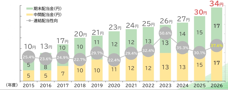 この最近の推移は以下の表の通りです。安定した配当金を維持しています。
