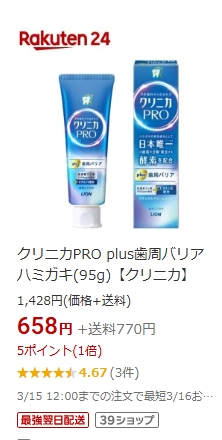 ・【ハミガキ】クリニカPRO plus 歯周バリア