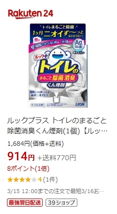 ・【トイレ用除菌消臭剤】ルックプラス トイレのまるごと除菌消臭 くん煙剤