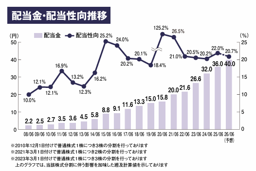 配当利回り: 1.0%前後 成長重視