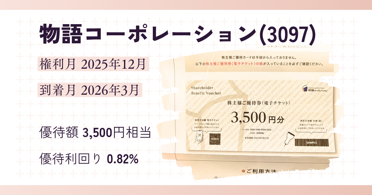 物語コーポレーション(3097)から株主優待と期末配当金が届きました。