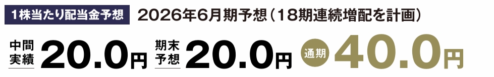 配当金は1株あたり20.0円なので100株保有で2,000円でした。年間予想は40.0円です!