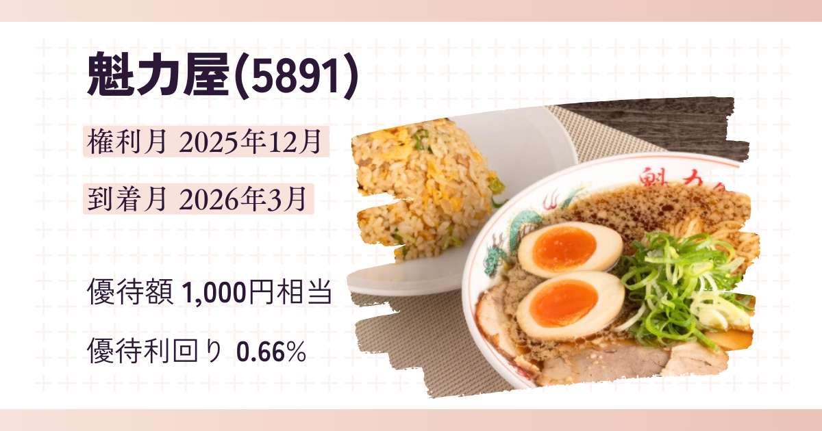 魁力屋(5891)の株主優待制度についての情報をまとめてみました。